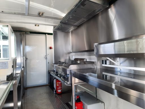 Ein Iveco Daily (Baujahr 2011), ausgestattet mit einer kompletten Edelstahlküche – hygienisch, professionell und durch die Behörden geprüft und zugelassen. Warmwasser ist selbstverständlich vorhanden.