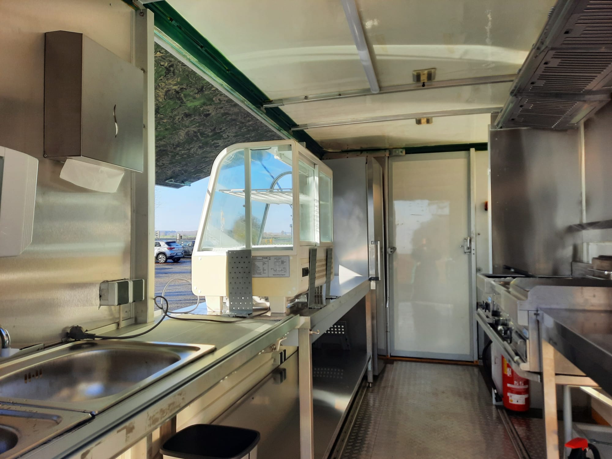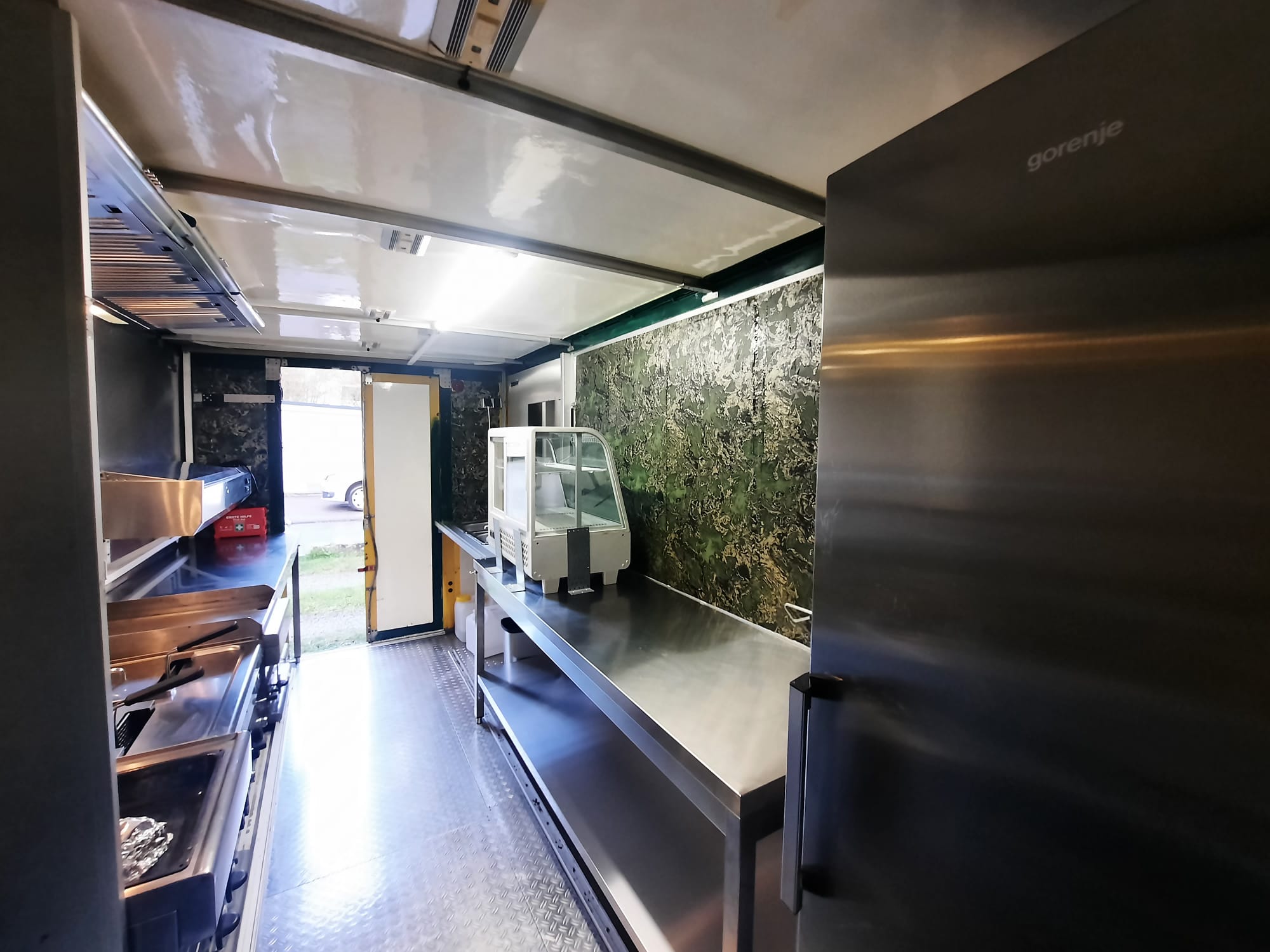 Ein Iveco Daily (Baujahr 2011), ausgestattet mit einer kompletten Edelstahlküche – hygienisch, professionell und durch die Behörden geprüft und zugelassen. Warmwasser ist selbstverständlich vorhanden.